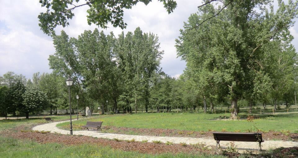 Área de recreio com zona de banho e parque infantil.