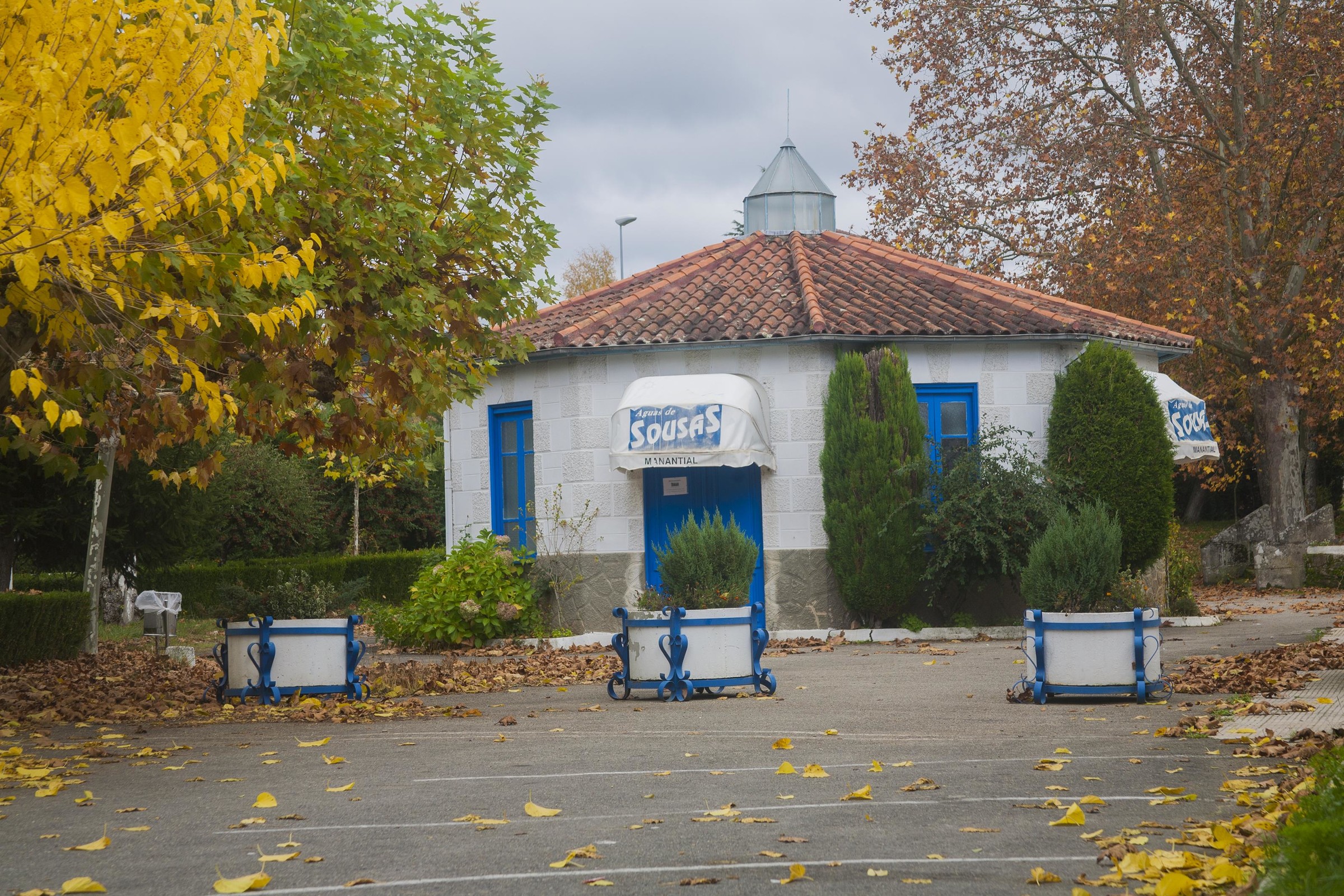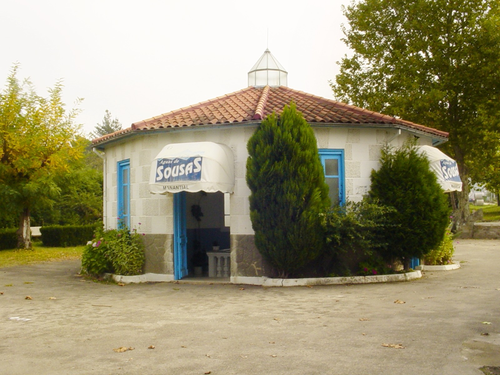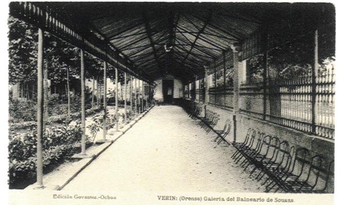 A nascente da Sousas foi declarada de utilidade pública em 1859. Desde há muito tempo que a fonte tem vindo a ser alvo de conservação, tanto para dotá-la de salubridade como para tornar mais bela a área circundante. Abriu-se um caminho desde a vila de Verín e protegeu-se o ponto de captação com uma caixa de vidro que conserva as suas qualidades. Houve em primeiro lugar um edifício ou buvette, que era precedido por uma galeria de 70 metros, ambos formados por uma estrutura metálica que conferia ao conjunto uma imagem muito elegante e muito moderna, ao gosto de uma época, entre os séculos XIX e XX, onde o Ferro simbolizava o progresso.