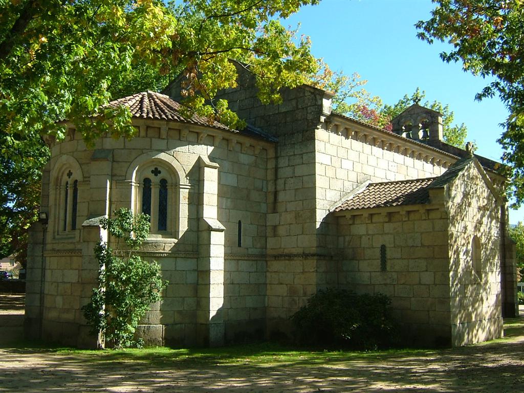 Igreja de estilo neorromânico, construída na década de 40 do século XX.Possui um amplo adro, de terra, ladeado por árvores de grande porte, e vedado por muro baixo.Decoração cuidada dos portais, pilares e tímpanos.